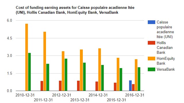 The cost of funds for small-medium size banks in Canada ranges from 59